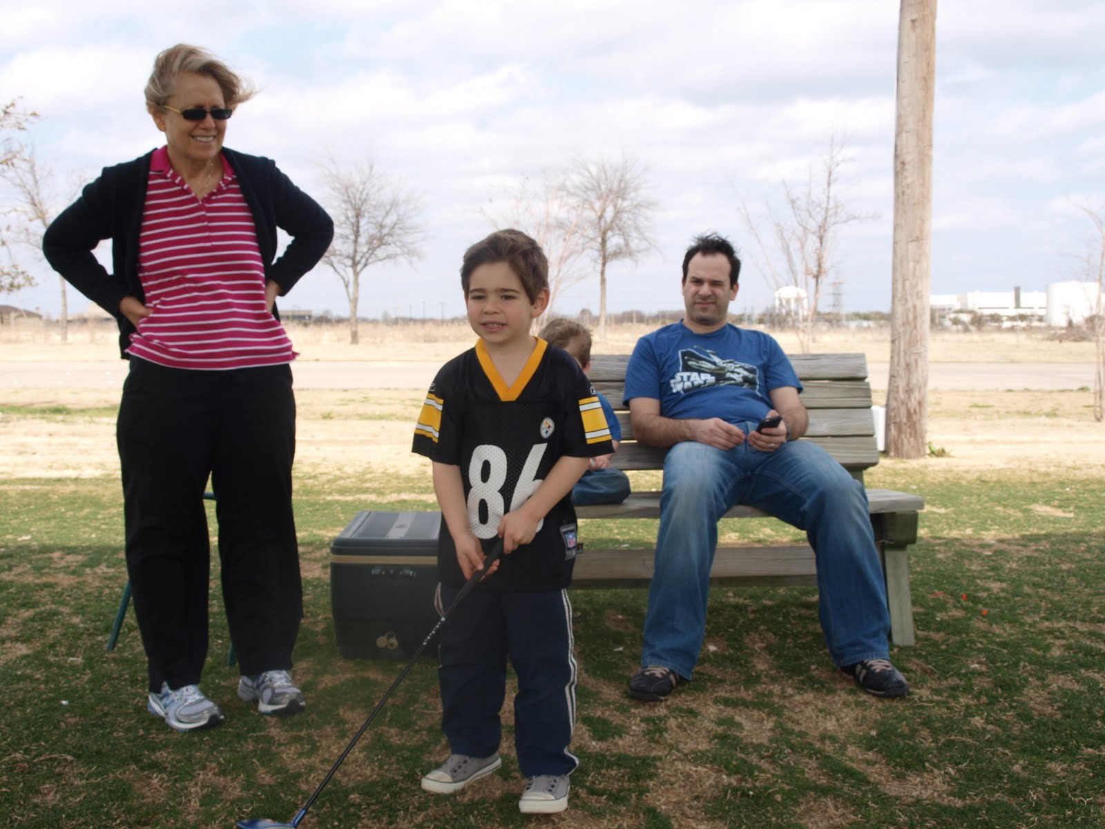 When she got home, Evan and I left to go to the park. I wanted to bring our tee for him to hit off of at a baseball field and work with him on running the bases. We stopped at the bank to deposit some checks before we went and then we went to the park. It was a really nice day. I set the tee up at home plate and then I'd yell out "single", "double", "triple" or "home run" after he hit a ball and I wanted him to tell me what base to run to and he'd run to it. I worked with him on running the right direction and to drop the bat after he hit the ball. He picked it up very quickly and he seemed to know which direction to run before I even told him. We both had a good time. Sunday is Evan's first tee ball practice so I wanted to introduce him to concepts he hadn't done before so he'd be more prepared.
